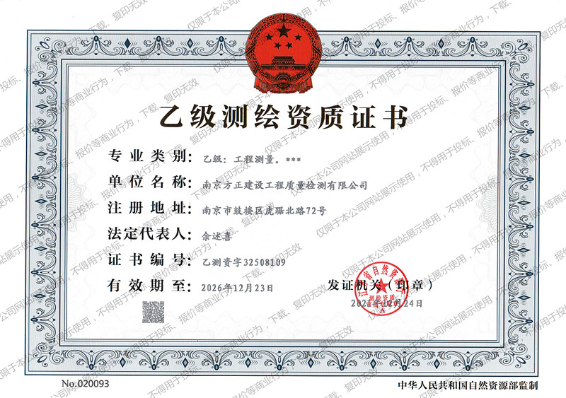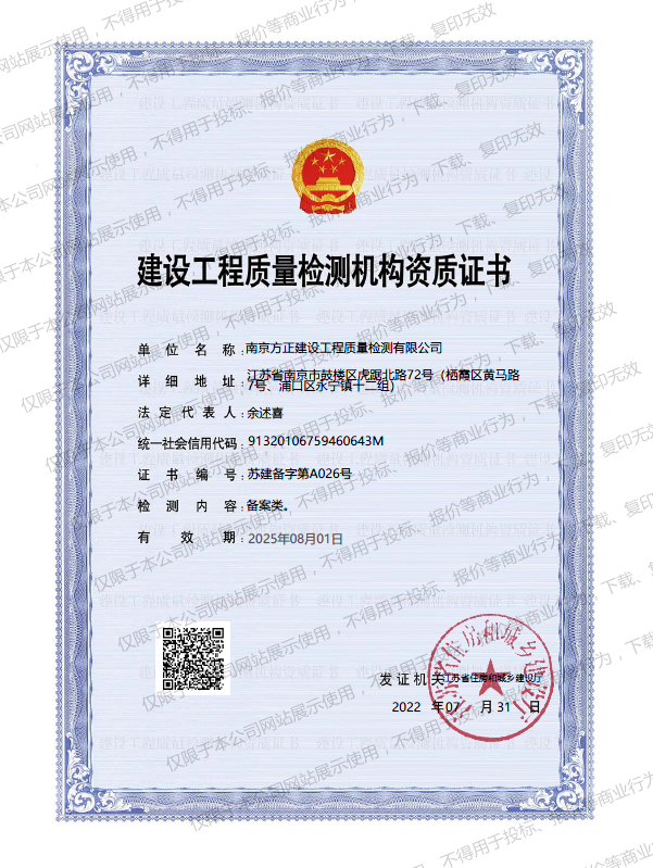 南京方正建設工程質量檢測有限公司是1989年省建設廳批準成立的具有獨立法人資格的專業工程質量鑒定及檢測機構,具有中國合格評定國家認可委員會實驗室認可CNAS資質、省建設廳核準的見證取樣類檢測、專項類檢測及備案類檢測資質,省質量技術監督局資質認定CMA資質,省地理測繪信息局測繪資質,被省建設廳評為2010年度、2011年度、2012年度A級信用等級單位,是入選《全省中小學校舍安全工程抗震鑒定機構名錄》的鑒定機構, 是入選江蘇省人民法院委托鑒定機構電子信息平臺的鑒定機構...
